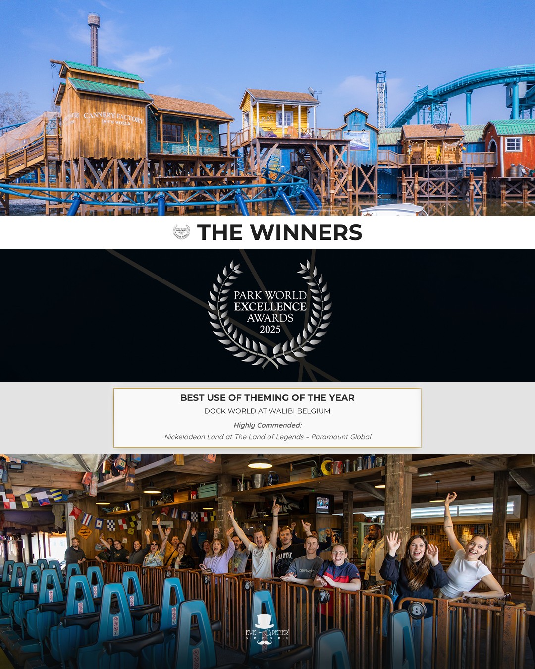 Dock World in Walibi Belgium heeft officieel de Park World Excellence Award 2025 voor Best Theming gewonnen!