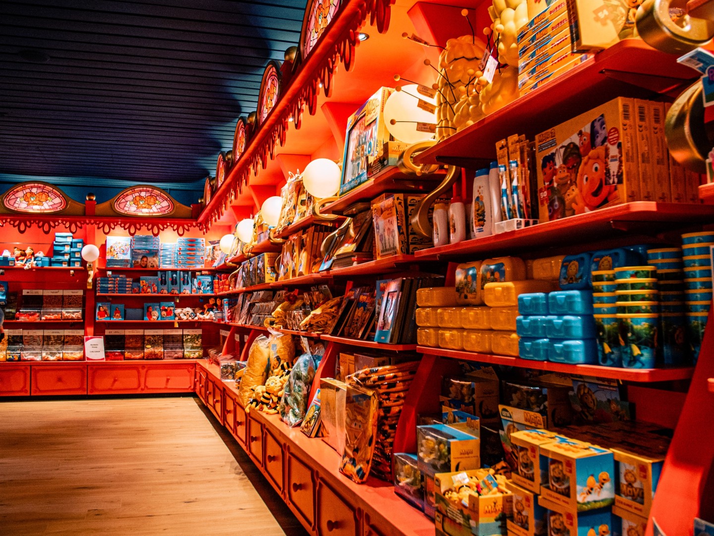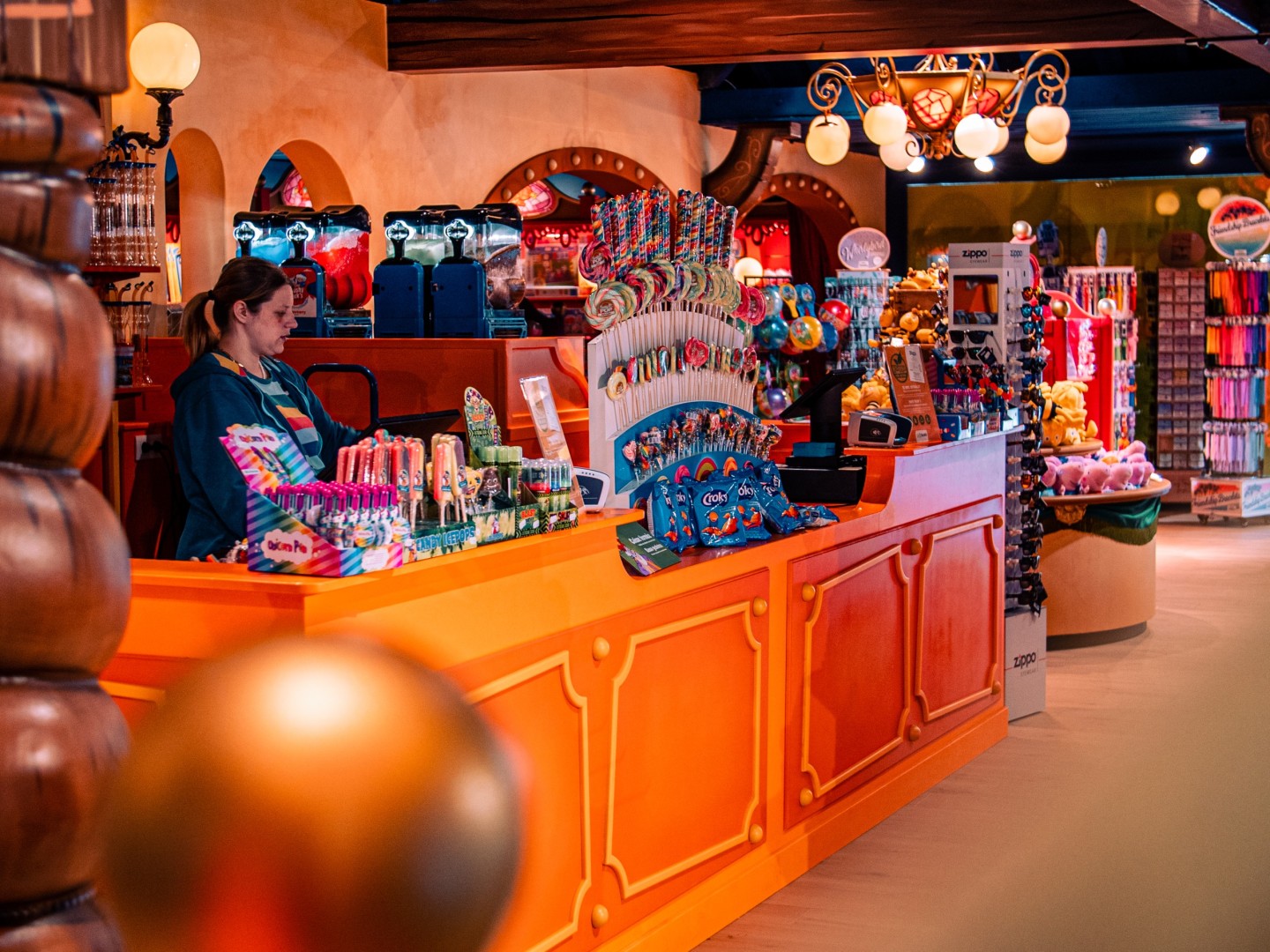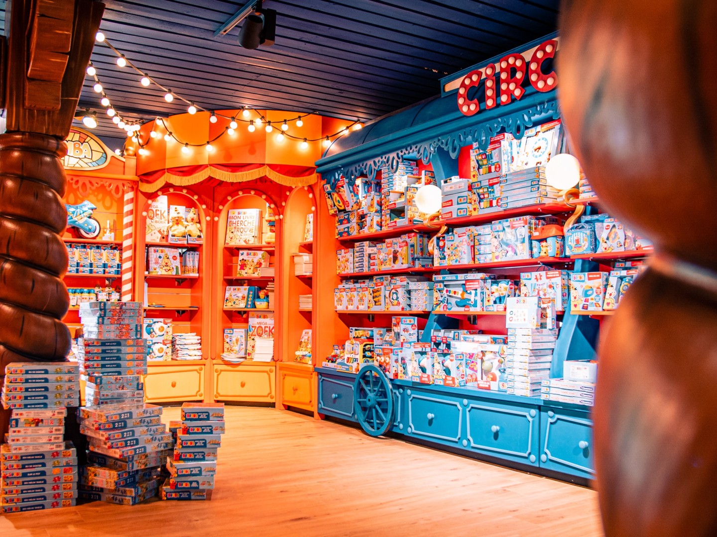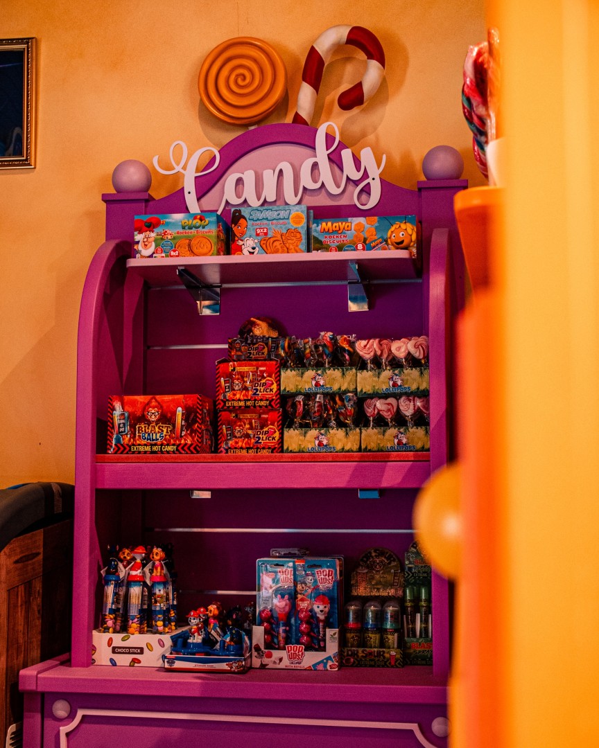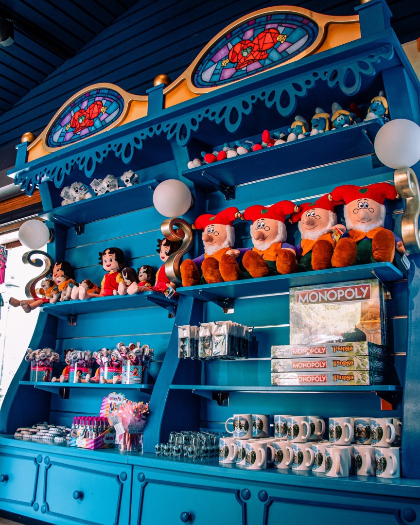 Voor Plopsa Coo bouwden en plaatsten we twee splinternieuwe Plopsa shops. Eye-Opener® Design zorgde voor de technische tekeningen waarmee ons team aan de slag kon met de productie van de kasten, etalage, kassa, decor elementen en outdoor signing.
