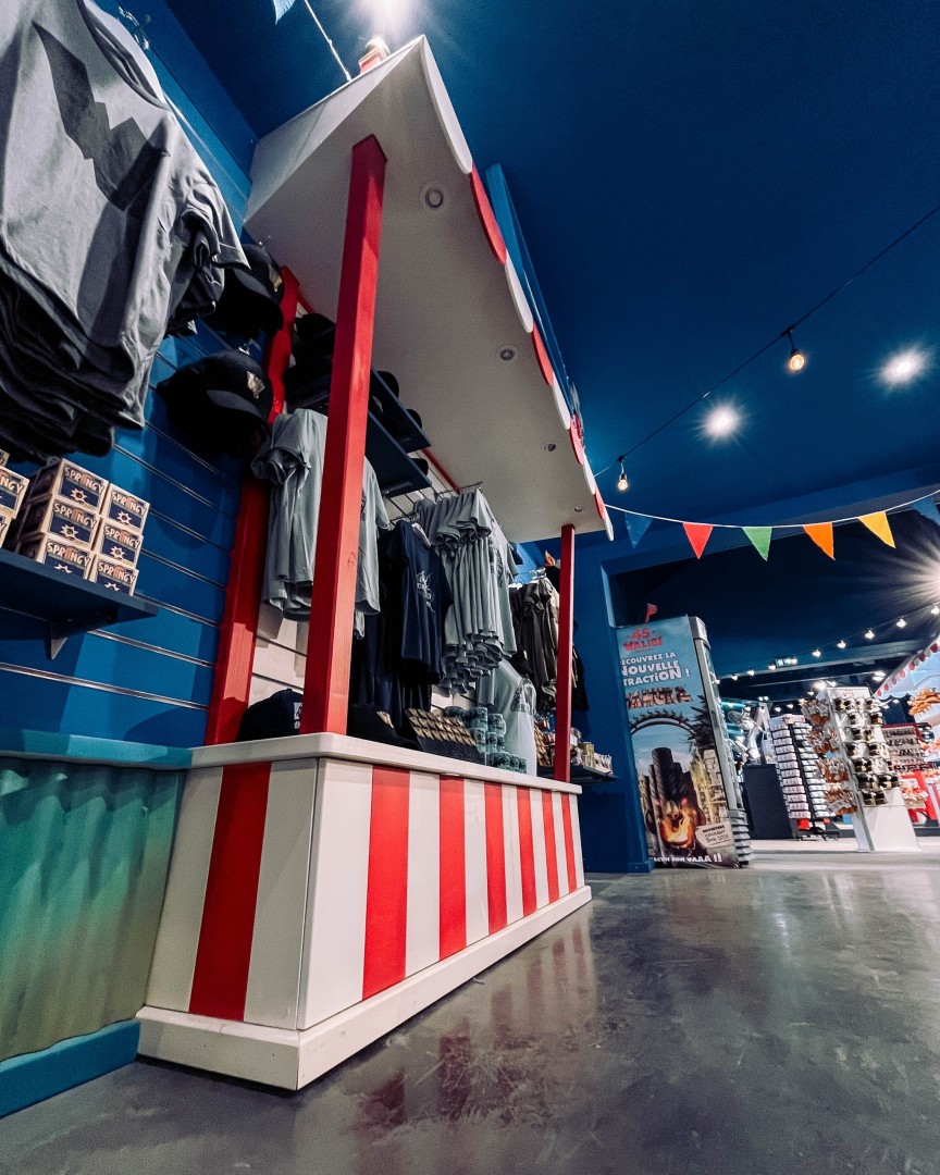 We zijn trots op onze samenwerking met Walibi Rhône-Alpes, waar we een gloednieuwe, op maat gemaakte shop hebben gebouwd die perfect aansluit bij de levendige sfeer van het park. Deze winkel biedt bezoekers een unieke beleving, met zorgvuldig ontworpen decorstukken die elk hoekje tot leven brengen. Hier draait het niet alleen om winkelen, maar ook om volledig opgaan in de thematische wereld van Walibi.